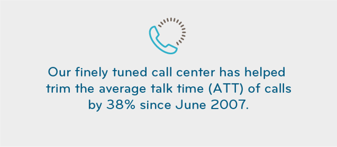 Inside the call center, sophisticated technology balances CSR workload and call distribution. This ensures that calls route to the CSR best suited to meet the caller’s needs for faster call resolution. Service is available in English and Spanish, and TTY with access to third-party translation services for additional foreign languages.